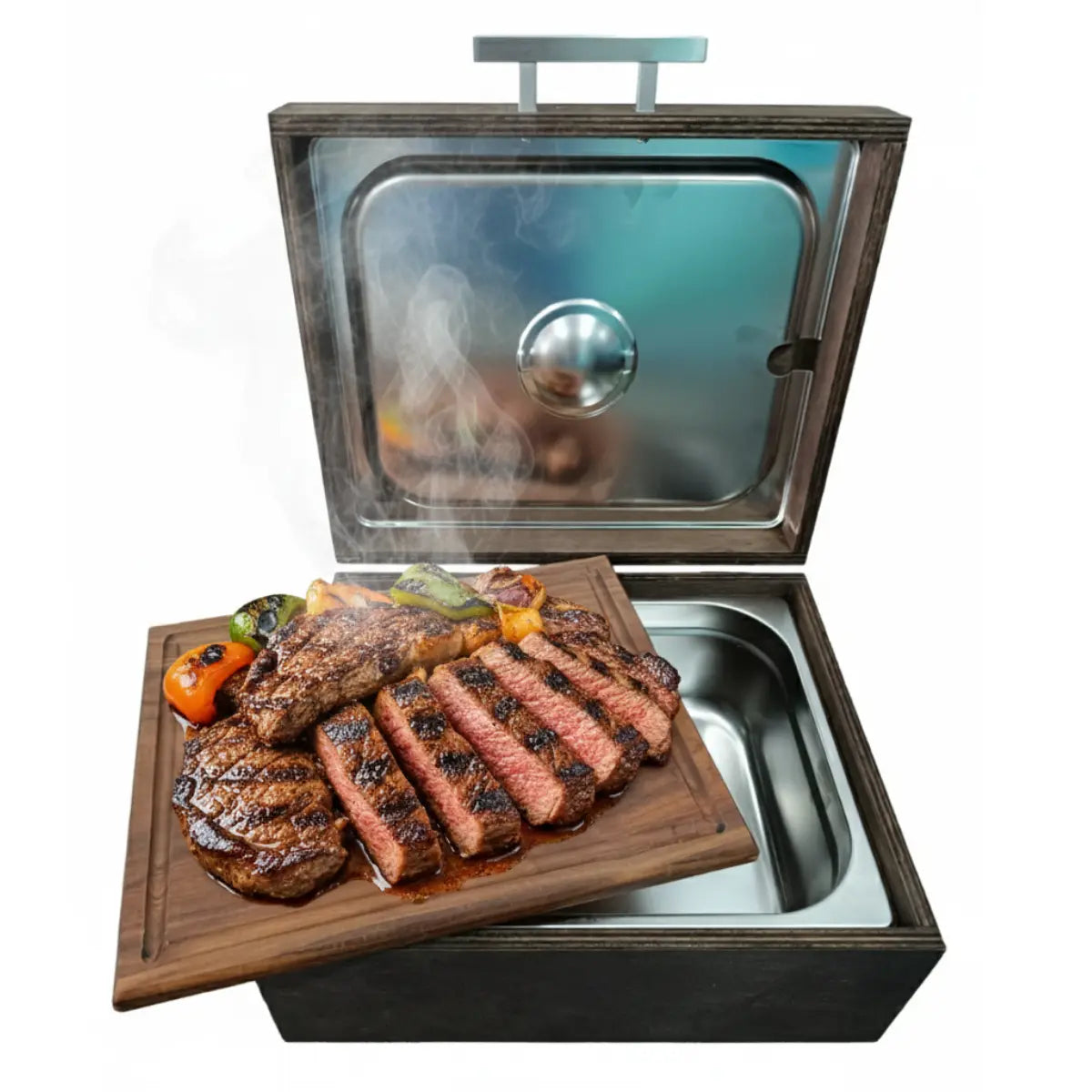 ¡Arma tu carne asada con nuestro Kit de Pino Veteado: el regalo de cumpleaños perfecto y completo! Esta caja de madera de pino con vetas visibles naturales ofrece un estilo rústico auténtico, capacidad de 4-5 kg y un inserto de acero inoxidable para organizar y mantener los alimentos calientes. Incluye una tabla de picar de pino grabada con láser, más utensilios esenciales: cuchillo y tenedor con mangos largos ideales para usar en el asador.