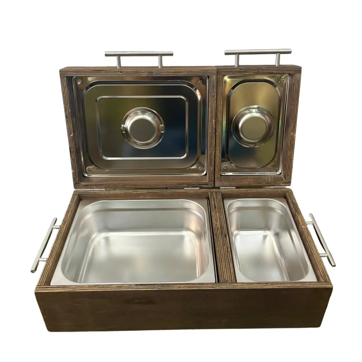 Las opciones comunes son pequeñas, no aíslan bien o usan materiales inferiores; esta mega caja de okume ofrece capacidad superior y resistencia real. Clientes dicen: "Perfecta para nuestras reuniones grandes, mantiene todo caliente" o "El grabado la hace un regalo que todos envidian".
