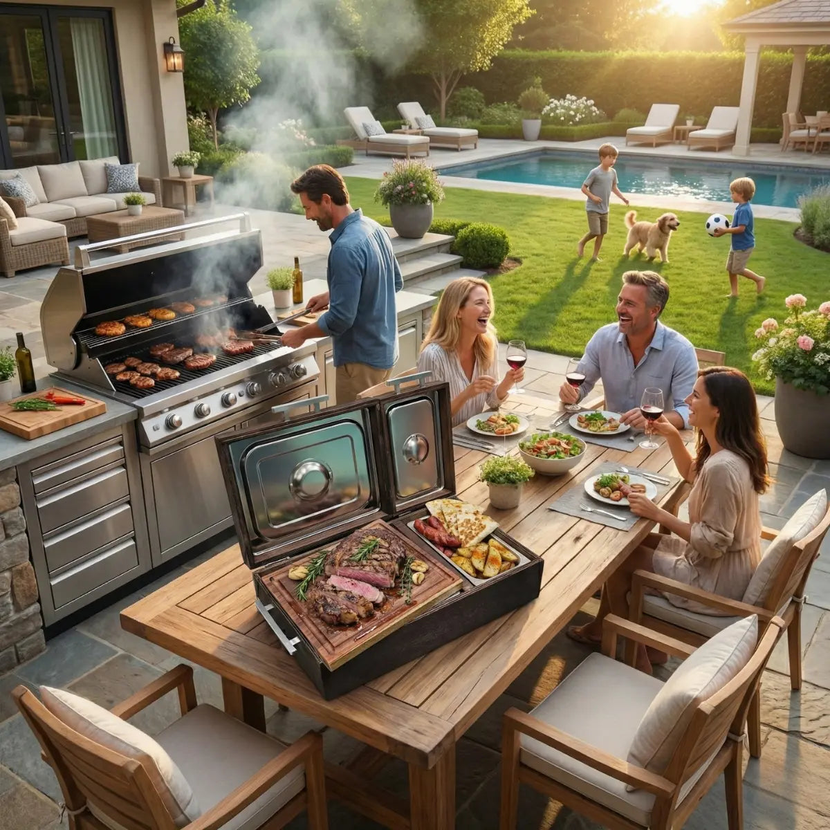 Perfecto para dominicales familiares extensos o eventos numerosos donde necesitas organización completa y estilo rústico. Resuelve el estrés de kits incompletos o genéricos para asados grandes. Ideal para quienes buscan un set práctico que se use siempre y combine con parrillas caseras o patios rústicos.